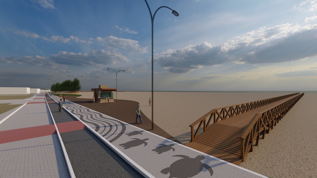 “A nova Orla de Santa Clara terá quatro quiosques duplos com banheiros todos tendo acessibilidade e duchas, um quiosque do Projeto Tamar e espaço com informações turísticas, um quiosque para salva-vidas, Guarda Civil Municipal (GCM) e Polícia Militar, fraldário, playground, Concha Acústica para eventos, Academia de Ginástica, decks, rampas para acesso à praia, banheiros com fraldários e arborização”, explicou Tininho, ao lado do subsecretário da pasta, Alex Favorett.