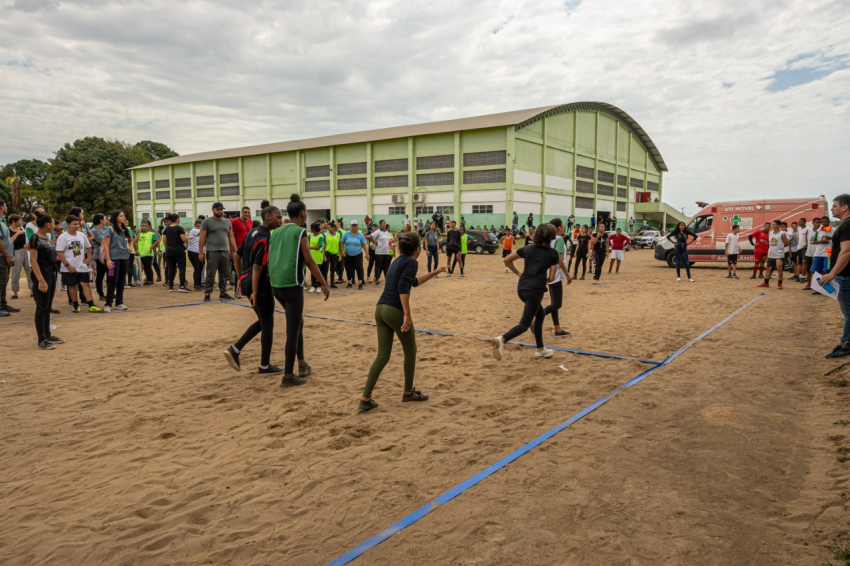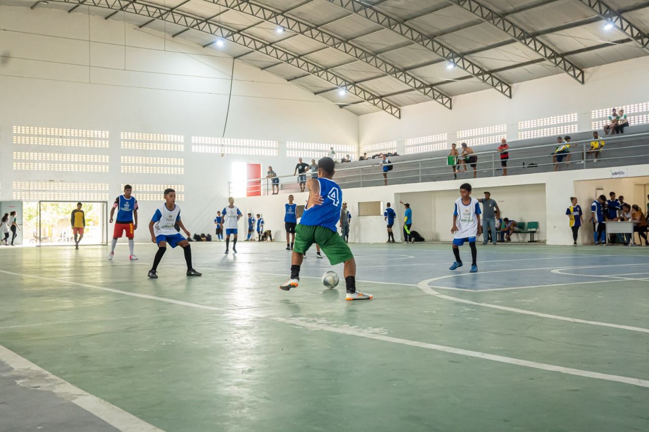 Nesta primeira etapa, competiram estudantes das categorias sub 14 e 17, em cinco modalidades: futsal, futebol, queimado, corrida e salto em distância.