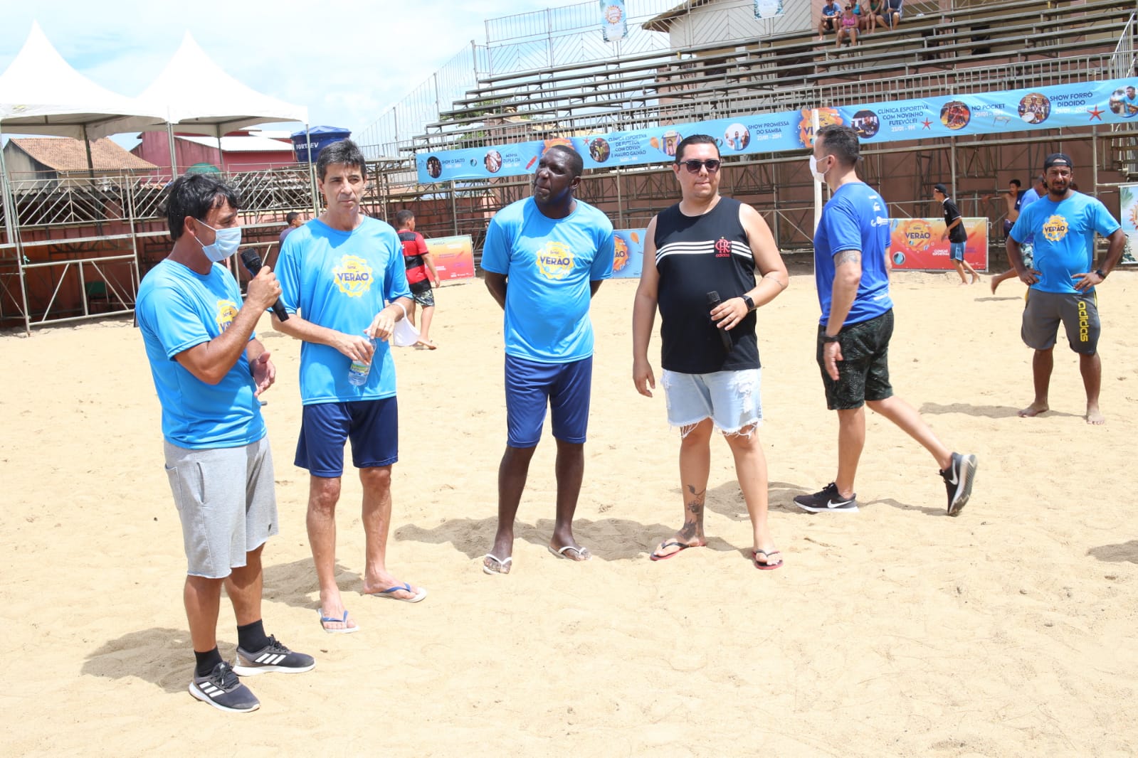 Na manhã de domingo (16), a prefeita Francimara Barbosa Lemos participou da oficina de futebol com os jogadores Odvan e Mauro Galvão, dupla de zaga histórica do Vasco da Gama e da seleção brasileira.