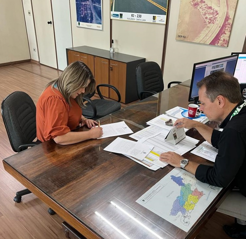 A prefeita de São Francisco de Itabapoana (SFI), Francimara Barbosa Lemos, assinou um convênio com o Departamento de Estradas de Rodagem (DER-RJ), através do vice-presidente do órgão, Mauro Valverde, para o município receber o Programa Asfalto Presente. A assinatura aconteceu nessa quarta-feira (11), na sede do DER, na capital fluminense, e objetiva a realização de reparos nas rodovias estaduais que cortam SFI, além de auxílio nas obras da nova rotatória e na implantação da mão única na Avenida Vereador Edenites da Silva Viana, ambas no Centro da cidade.