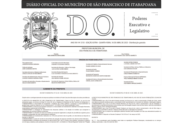 Através do Decreto Municipal nº 59, em edição extra do Diário Oficial desta quarta-feira (16), a Prefeitura de São Francisco de Itabapoana instituiu o contingenciamento de despesas públicas por um período de 90 dias. Os objetivos são assegurar o equilíbrio fiscal e adequar as despesas à real capacidade financeira do município.