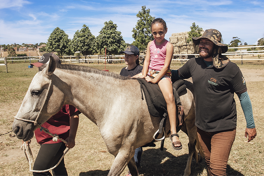 - O trabalho é feito com o acompanhamento de fisioterapeutas, psicóloga, músico, condutores de animais e auxiliar de serviços gerais. É disponibilizado o transporte para os praticantes que precisam, saindo do Centro de São Francisco até o haras – explicou Lima, ressaltando que os praticantes são cadastrados pelo Setor de Inclusão da SMECT mediante encaminhamento.