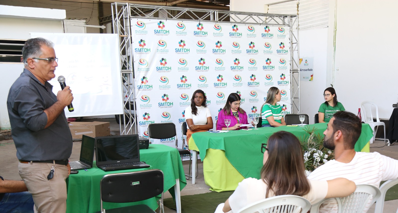 A mesa de debates foi composta pelo gerente de Imunização da Secretaria Municipal de Saúde, Cristiano Luís; a coordenadora de Educação Infantil da Secretaria Municipal de Educação e Cultura, Gisele Batista; a coordenadora do Centro de Referência Especializado de Assistência Social (Creas), Priscila Pedrosa; a coordenador do programa Criança Feliz, Fabiana Oliveira; a coordenadora do Cadastro Único, Ludimila Manhães; e a assessora técnica de Conselhos de Direitos, Hellen Mayerhoffer.