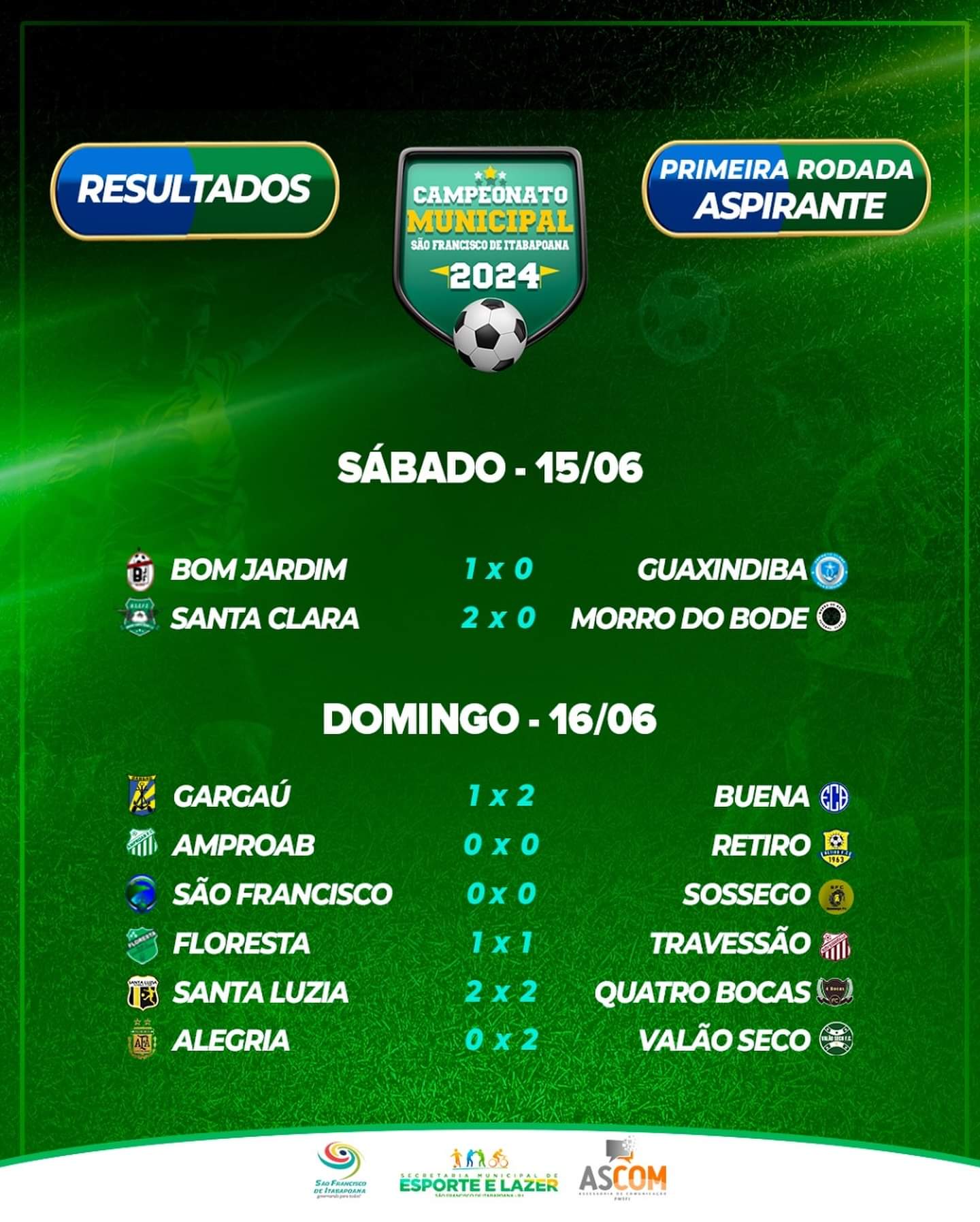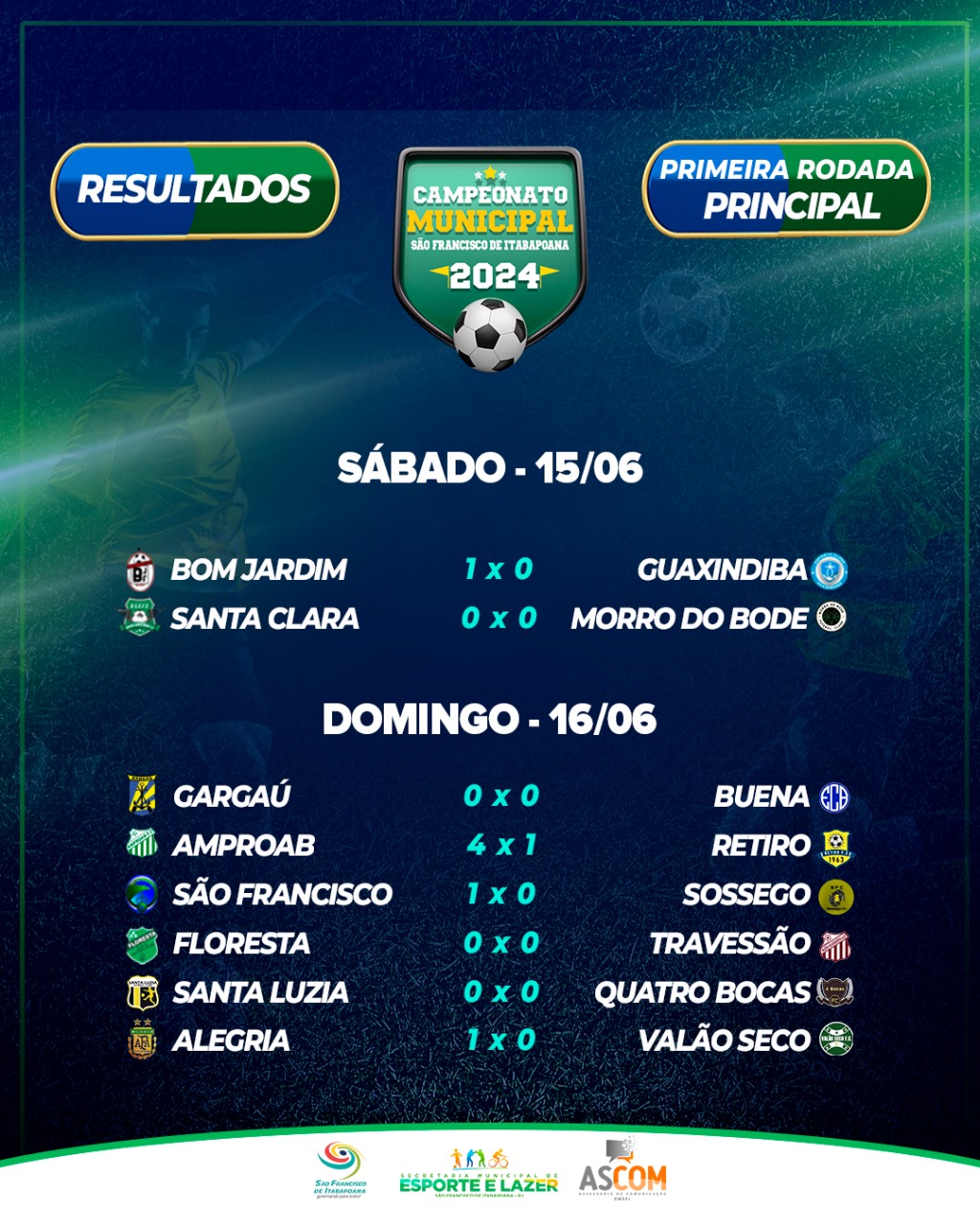 O Campeonato Municipal de Futebol de São Francisco de Itabapoana (SFI) 2024 teve início no último fim de semana com partidas no sábado (15) e domingo (16). A competição, promovida pela Secretaria Municipal de Esporte e Lazer, é disputada por 16 times nas categorias Principal e Aspirante. Na 1ª rodada, a maioria dos times mandantes conseguiu vencer (confira o resultado no final da matéria).