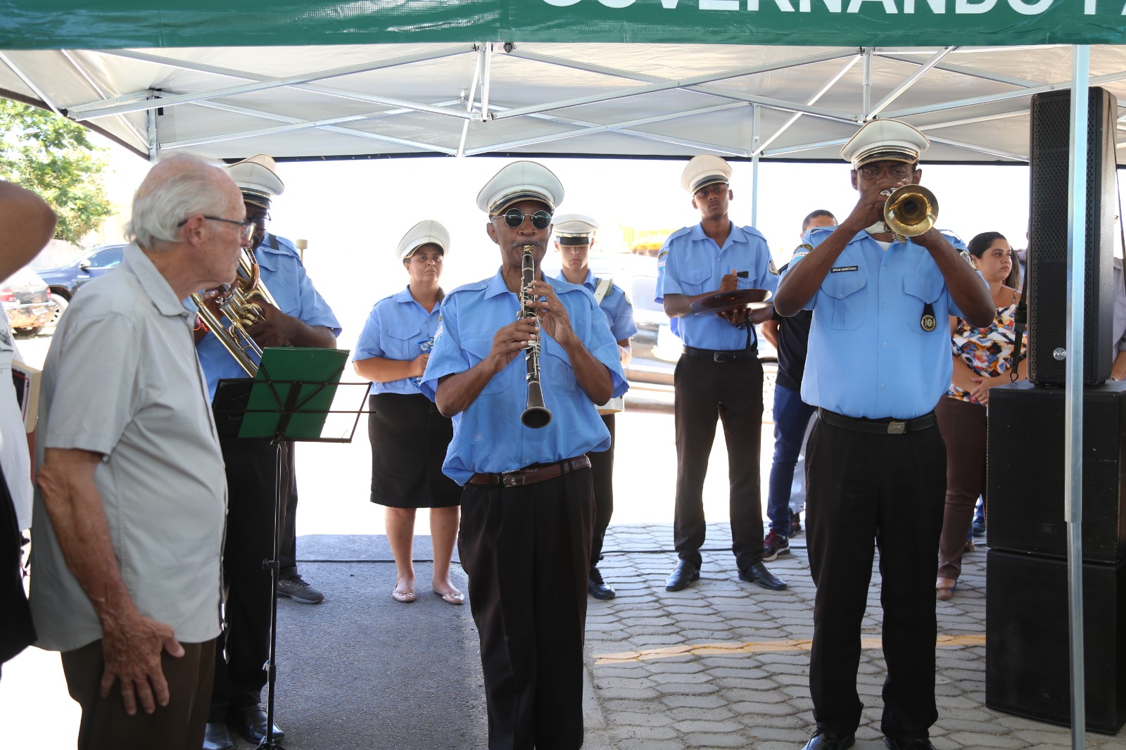 O evento começou com a execução dos hinos nacional e municipal pela Banda da cidade e foi realizado no espaço que vai abrigar o prédio, um terreno nos fundos da Unidade de Saúde Francisco Ribeiro da Silva Filho. A previsão é que as obras sejam concluídas em novembro.