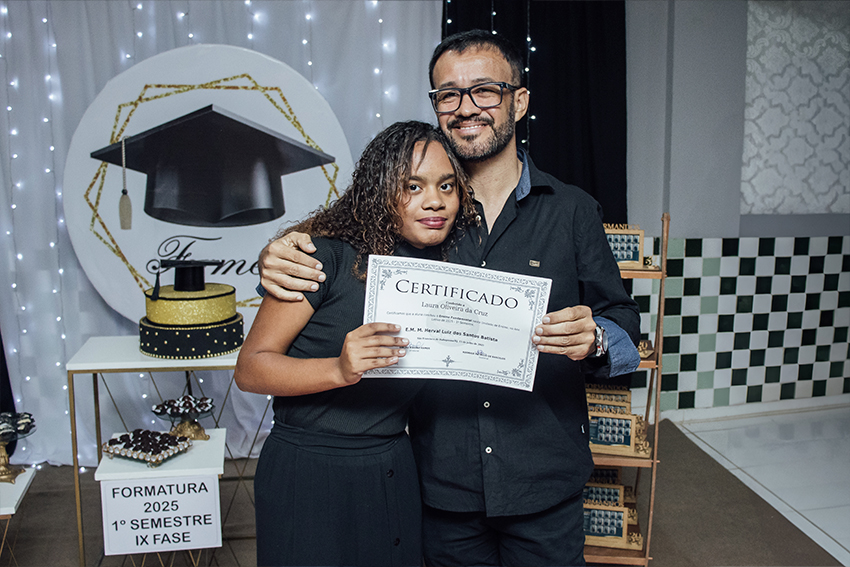Ao todo, 26 estudantes irão se formar na EJA. Uma delas é Rafaela Cavalcante, que não conseguiu concluir os estudos e resolveu voltar a estudar por causa dos filhos e para buscar mais aprendizado e oportunidades. “Estar me formando hoje representa uma sensação de vitória, garra e muita perseverança. Foram dias difíceis, mas eu venci, e isso é muito satisfatório”, disse Rafaela.